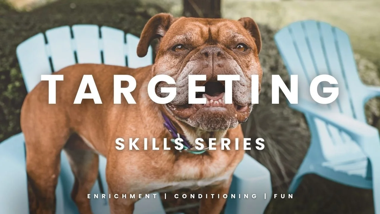 Paw Targeting 🐾 A collection of step-by-step progressions that teach your dog to confidently move to, stand on, or interact with specific targets. These skills build body awareness, coordination, and focus while giving you practical tools you can use anywhere—from building distance and direction cues to creating calm “go to bed” routines.