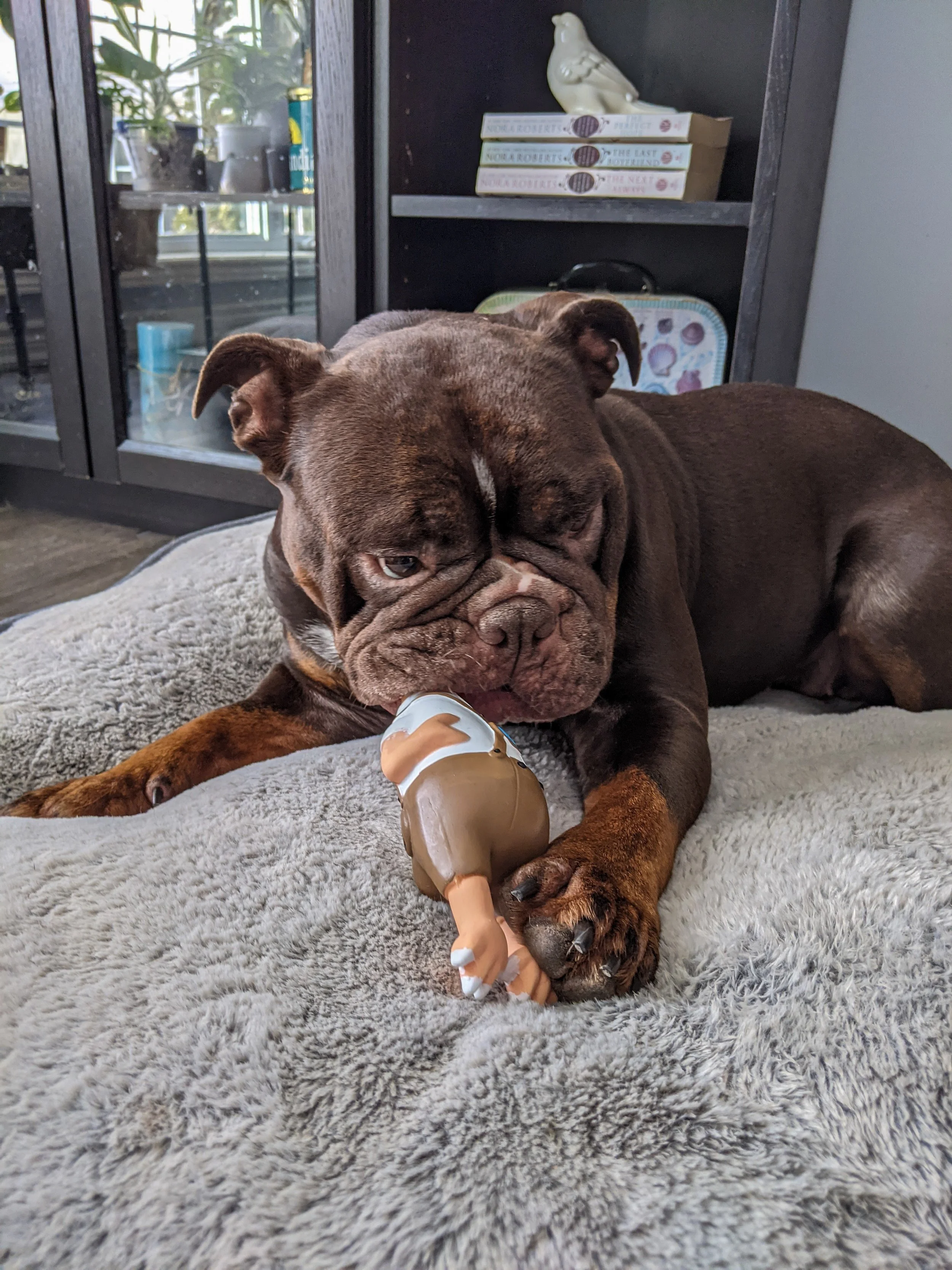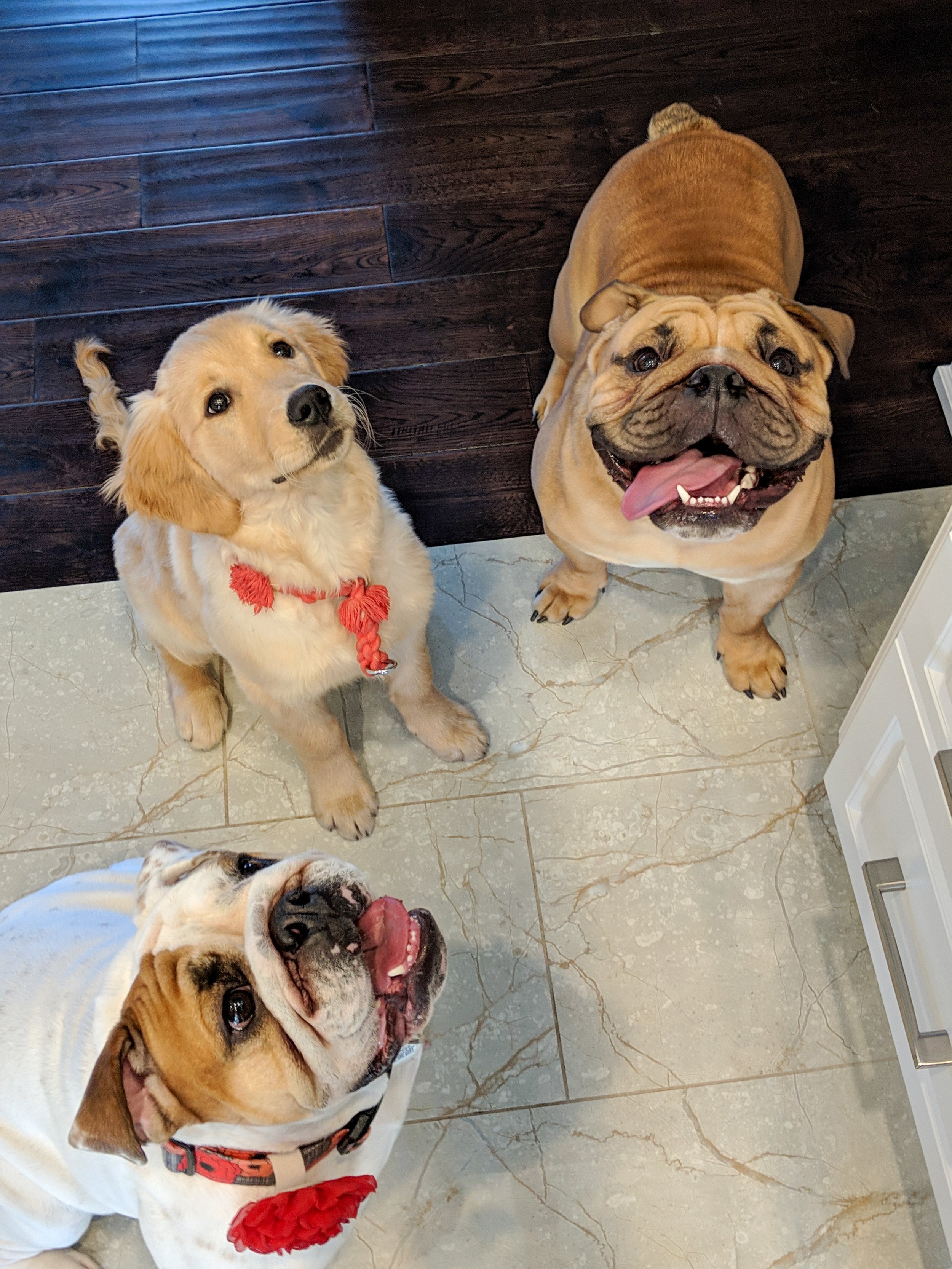 This is the bulldogs’ home, and it’s their Mom handing out the treats.