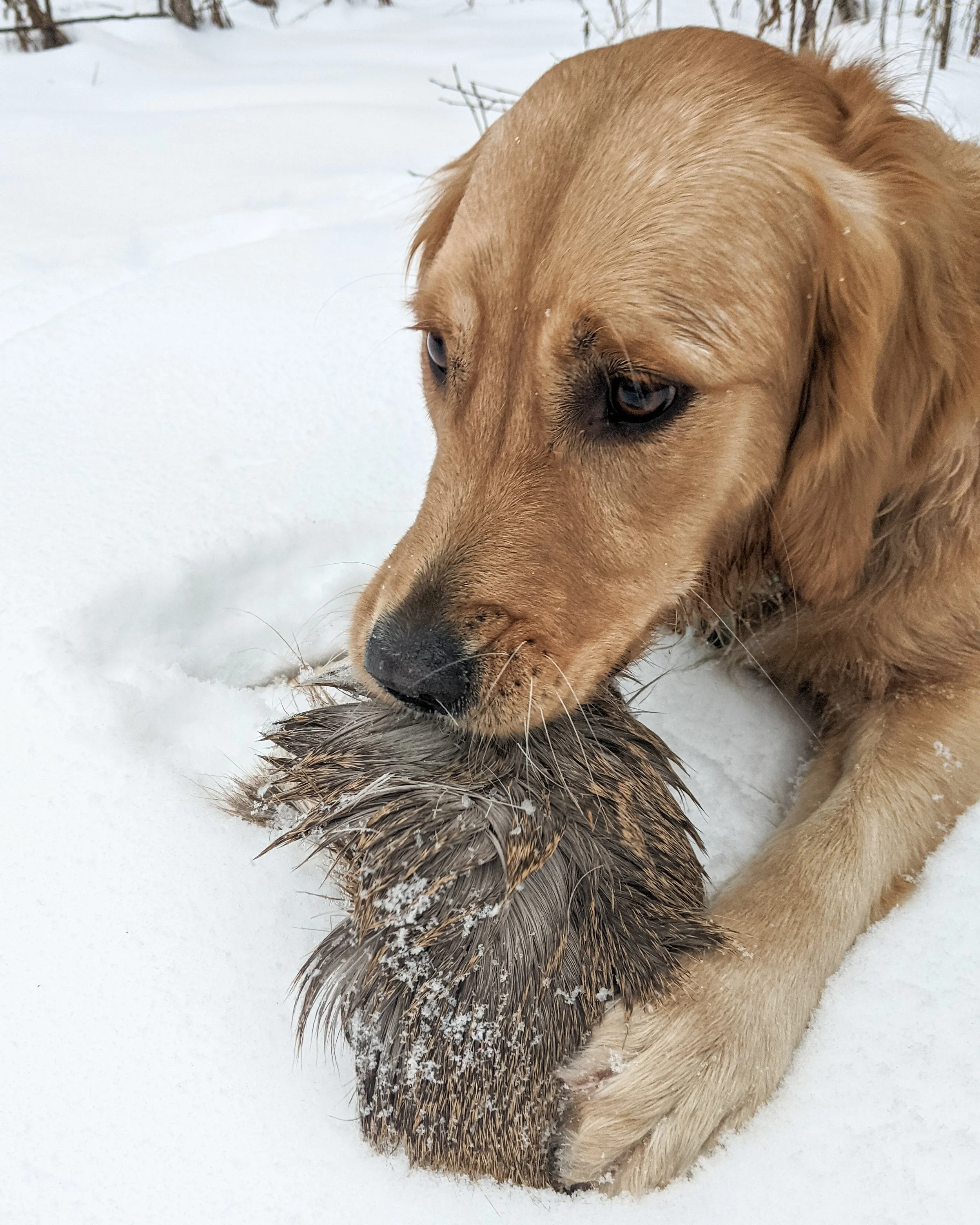 • the item held between the front paws