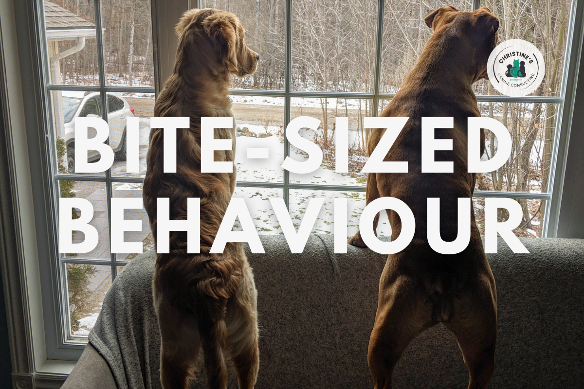 Dogs sometimes position their body around an item they value while keeping an eye on what’s happening nearby.