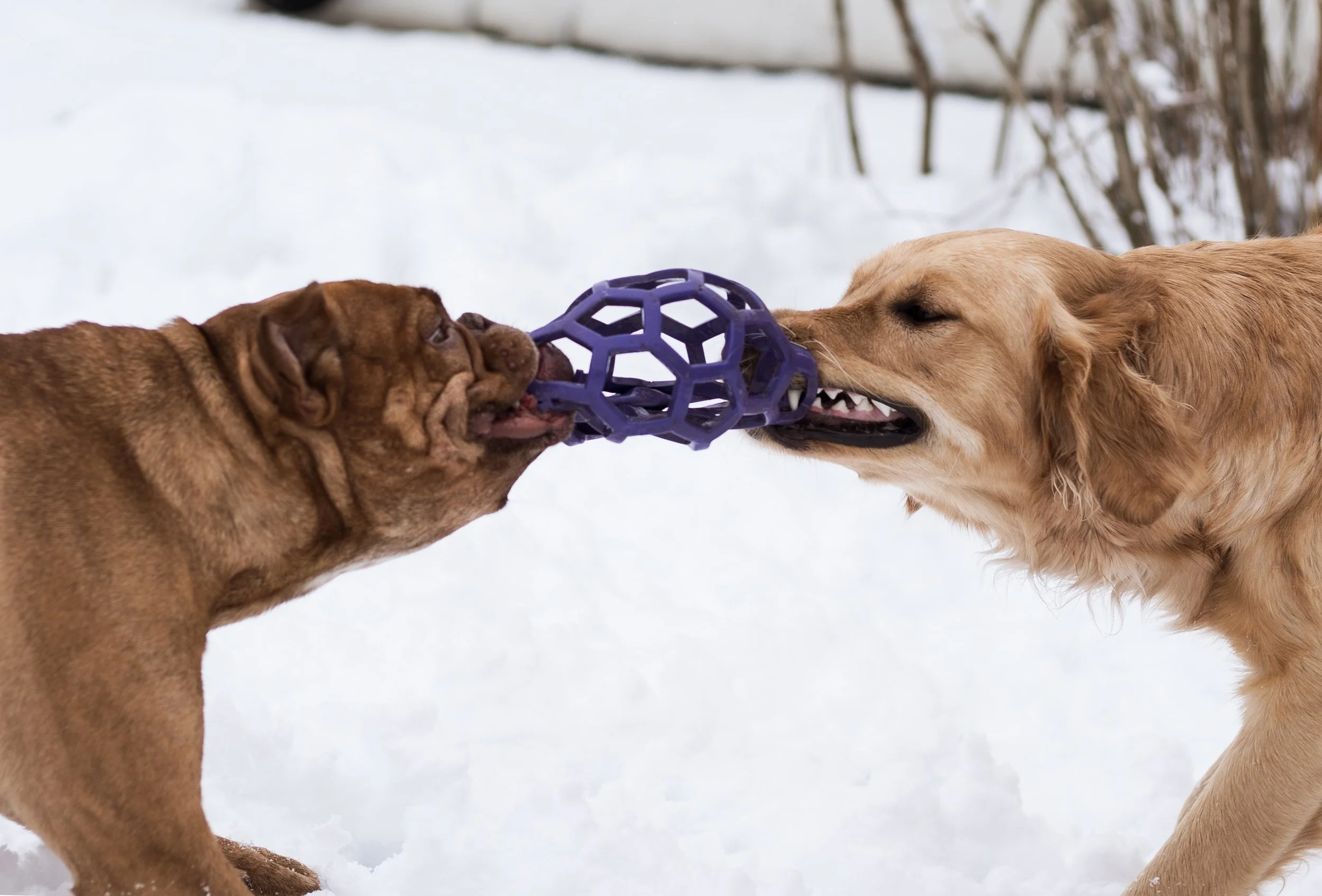 In this case, Hazel tends to protect her toys rather than sharing them freely. She loves playing tug with Hank, but she’s not always sure about playing tug with Lucy.